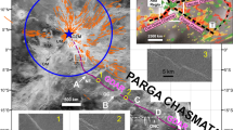 However, the characteristics and timing of Atla Regio volcanism are not well understood, with the most detailed regional mapping conducted at a scale of about 1:2.5 M26. More detailed mapping at a scale of about 1:500,000 is in progress27,36. An important question is the level of present-day volcanic activity. One insight is from the Ganiki Chasma, north of Atla Regio, where the Venus Express mission revealed transient thermal anomalies interpreted to represent the extrusion of lava flows34,35. Also, based on emissivity data from NASA’s Magellan mission, ref. 37 concluded that some of the lava flows at Maat Mons may be geologically recent. Herrick and Hensley38 recently proposed ongoing volcanic activity at Matt Mons based on differences observed in Magellan images taken eight months apart.