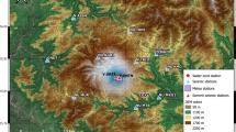 The high Vs at 7–13 km depth is an intriguing feature that can be interpreted as a thick accumulation of mafic material by repeated magma underplating. This invites an intriguing scenario about how magma is added and stored within the crust during continental extension. Repeated episodes of magma ascent, emplacement, and solidification at mid-crustal depths might have occurred during the life of the volcano, progressively creating this massive accumulation22. The high-velocity body indicates that the intrusive complex is in sub-solidus conditions and may represent today a transfer zone for magmas formed in the deep roots of the plumbing system and traveling upward in the absence of wide melt volumes in the upper crust.