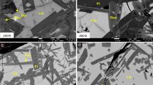Trace and accessory minerals are typically smaller in grain size and are commonly found in interstitial areas or hosted within the primary minerals (Fig. 1). Silica appears as anhedral crystals with a typical size of 200–500 μm, often associated with plagioclase and impact melt. Apatite and merrillite are often embedded in orthopyroxene or plagioclase, or associated with impact melt (Supplementary Fig. 3a, b). While typically sized between 5–20 μm, some merrillite grains are larger, reaching up to 30 × 200 μm in plagioclase. EPMA data confirm apatite as fluorapatite (F0.76–0.86Cl0.08–0.14OH0.06–0.10), and merrillite containing trace amounts of Cl ( ~ 100 ppm). The zirconium-bearing phases in the sample include zircon, baddeleyite and zirconolite. Zircon grains are 30–50 μm in size, euhedral to subhedral, and usually coexist with plagioclase and silica (Supplementary Fig. 3c). Baddeleyite and zirconolite grains are relatively small, typically less than 5 μm (Supplementary Fig. 3d). FeNi metal and troilite grains are typically 2–10 μm in size, with Ni/Co ratios (0.96–2.85 for FeNi metal and 0.31–2.08 for troilite) consistent with those of indigenous metal/sulfides in pristine lunar rocks (Supplementary Fig. 4).