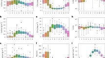 A crucial factor influencing vertical nutrient fluxes is the depth to which vertical velocities penetrate the nutricline15. In the tropical ocean and subtropical gyres, multi-year observations indicate a deeper nutricline compared to other regions (Supplementary Fig. 3). Also, submesoscale vertical velocities in these regions tend to penetrate shallowly34. These characteristics may lead to vertical velocities that are largely confined to the mixed layer above the nutricline35. Long-term observations also reveal that the seasonal nutricline is often deeper than the mixed layer during strong submesoscale ageostrophic motions (Supplementary Fig. 4a–c), implying that submesoscale processes contribute minimally to vertical nutrient flux15,36,37. In such a scenario, phytoplankton biomass may not increase rapidly in the near-surface (Fig. 5a). However, on the one hand, these vertical velocities might transport subsurface low-light acclimated phytoplankton (characterized by small \(\theta\) values) to the near-surface15,38. On the other hand, the vertical motions may expand the depth to which surface phytoplankton are mixed, resulting in shortened residence time of phytoplankton in the light-sufficient euphotic layer and thus decreased daily mean light exposure. This decrease in light exposure may stimulate the synthesis of Chl in phytoplankton cells to enhance light harvesting efficiency, thus leading to a decrease in \(\theta\)9.