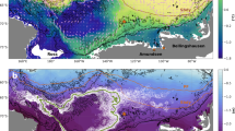 Applying the observed mean heat flux of 1.7 W m−2 to the area of existing inter-layer velocity differences in the eastern Amundsen Sea continental shelf (red box in Supplementary Fig. 7a) yields a horizontally integrated cross-thermocline heat transport of ~ 0.13 TW. This is at least an order of magnitude smaller than the onshore heat transport carried by the CDW inflow, as estimated by both our model and previous studies10,20, indicating that only a minor fraction of the onshore heat is lost to the WW layer by AU-controlled diapycnal mixing before reaching the ice shelves. Furthermore, this vertical flux is also smaller than the horizontally integrated surface heat loss to the atmosphere within the same region. We attribute this difference to processes in ice shelf-adjacent areas, where melt-water outflow, coastal polynyas and strong upwelling markedly enhance vertical exchange. The elevated Qnet in these near-shore zones (Fig. 5a, b) supports this interpretation. Our findings highlight the importance of resolving coastal mixing in order to close the Amundsen Sea heat budget, important for forecasting the West Antarctic ice-shelf melting.