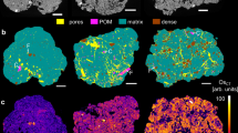 We quantified multiple parameters, including image-based porosity, surface-connected porosity, isolated porosity, connection probability, surface area density, distance to pores, average POM-pore distance, and pore size distributions using Fiji/ImageJ. Image-based porosity was calculated as the ratio of pore voxels to total aggregate voxels using Volume fraction. Connection probability, a metric for pore network connectivity, ranges from 0 (many unconnected pores) to 1 (all pores forming a single interconnected cluster). It was calculated using the formula44: