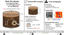 No differences in the MP stocks between the studied forest sites were observed; this is probably due to a limited difference in forest stand density and stand age (Supplementary Fig. S1, Supplementary Table S1) and distance from an emission source21,25. A top-down increase of MP stocks occurs as a function of soil horizon thickness and bulk density. Atmospheric deposition and leaf capturing are thought to be the major entry pathways of MPs to forest systems16,25,26. MPs show a strong retention on leaf surfaces as they are primarily bound within the epicuticular wax layer26. However, the decomposition of litter and subsequent delivery of new litter on top causes constant relocation of MP into deeper horizons23. Furthermore, the vertical migration of MPs released from decomposed litter has already been proven to occur for mineral soils with different textures and porosities by gravity15 and bioturbation9,23.