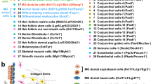 Tarsal plates from four mice per replicate were pooled in HBSS containing 0.25% trypsin and 50 µg ml−1 DNaseI and incubated at 37 °C for 15 min. After mincing, tissues were dissociated in PBS containing 20% FBS and 0.5 mM EDTA and filtered through a 70-µm strainer. Cell were resuspended into ice-cold PBS containing 2% FBS, 0.5 mM EDTA and 50 µg ml−1 BSA and incubated with anti‐CD45-APC/cyanine7 (BioLegend, 103116, 1:100 dilution) and anti‐Itgav-PE (BioLegend, 104106, 1:100 dilution) for 1 h. Cell sorting was performed using a FACSAria II Flow cytometer (BD Biosciences). Itgav+;CD45− meibomian gland cells (approximately 10,000 cells per replicate) were sorted into DMEM/Ham’s F12 medium containing 10% FBS. After sorting, cells were pelleted and total RNA was directly extracted using an RNeasy micro kit (QIAGEN). In our study, CD45 expression was used to exclude hematopoietic cells from the analysis.