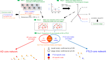To determine the degree to which CSF modules in the genetic FTLD network overlapped with CSF modules in AD, we performed overrepresentation analysis (ORA) of module gene symbols between the CSF genetic FTLD network and two CSF AD protein co-expression networks that differed in depth of proteomic coverage and platform. Specifically, the CSF genetic FTLD network was compared with (1) a multiplatform CSF network (Somalogic, TMT-MS; n = 5,242 proteins, 34 modules) constructed in a small cohort of AD (n = 160) and controls (n = 140)27 and (2) a shallower TMT-MS CSF network (n = 1,840 proteins, 14 modules) constructed in a more racially diverse (~50% African American) cohort of AD (n = 98) and controls (n = 105)30. Module overlap was determined using a one-tailed Fisher’s exact test, followed by correction of P values for multiple testing using the Benjamini–Hochberg method. Overlap of module gene symbols between networks was visualized using a custom in-house script27.