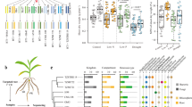 Compositional similarity matrices (Bray–Curtis (BC) of the log-transformed OTU tables) were calculated in PRIMER v.6.1 [42, 47, 48] and homogeneity of multivariate dispersions (PERMDISP) tested to evaluate the dispersion of samples for each compartment. The specific roles of RS–root system compartmentalization in explaining the variation of microbial communities were quantified using the PERMANOVA function adonis2 in the vegan package in R [49]. Principal coordinates analysis (PCoA) and multivariate generalized linear models (many GLM, main and multiple comparison tests, using negative binomial family errors; Supplementary Fig. S3) were performed, with the factor “compartment” (of four levels: RT, RS, RH, and NV soil) as explanatory variables and by using PRIMER v.6.1 and the R package mvabund [50], respectively. Components of beta-diversity (similarity, richness difference and replacement) in the microbial communities associated with the root-system compartments and the NV soil were also quantified using the function beta.div.comp of the R package adespatial [51, 52]. The occurrence of distance-decay patterns in the RS–root system and NV soil was tested using the linear regression (GraphPad Prism 7 software, La Jolla California, USA) between the similarity of bacterial/microeukaryotic communities (BC) and the distance between the different compartments. Alpha diversity indices (richness and evenness) were calculated using the PAST software [53]. Shared and exclusive bacterial and microeukaryotic OTUs (fungi and algae) in the different compartments were visualized using Venn-diagrams. The Kruskal–Wallis test (FDR p correction) was used to detect significant differences (p < 0.05) among taxonomic groups in RS–root system compartments.