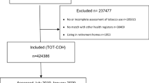 A rapidly emerging literature has used surveys to investigate self-reported consumption changes during the COVID-19 pandemic for diet and addictive substance use (i.e., alcohol, tobacco, drugs). The survey studies find mixed results for estimates of changes in (expected) tobacco consumption during COVID-19. Some studies report average increases in smoking16,17,18,19,20, while others report average decreases21,22 Within these studies, several find evidence of heterogeneity with about 15–30 percent of respondents reporting increases in smoking and a similar share reporting decreases19,22,23. These studies were conducted in different countries (U.S., France, Netherlands, Greece, China, South Africa, India, Italy, the UK), using a range of survey techniques (including online and phone surveys), study lengths (ranging from a week to months), and sample sizes (from a few hundred to many thousands). The only prior study in Denmark was conducted among pregnant women and finds no effects of COVID-19 on smoking among this group24. All of these studies rely on self-reported measures. And, as highlighted in a recent study by the U.S. Centers for Disease Control (CDC), they may also suffer from differential response rates during the COVID-19 pandemic compared to pre-pandemic periods25.