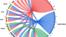We used ReGAIN v.1.0.5 to elucidate on probabilistic patterns of AMR gene co-occurrence50. We selected resistance genes that occur in 5 – 95% of the global plasmid dataset to exclude ubiquitously occurring genes and reduce noise in creating the Bayesian network. For every pair of AMR genes, we calculated the conditional probability, relative risk, and bidirectional probability score. We carried out 500 bootstrap replicates. A 0.5 significance threshold was used to filter out weakly supported gene pairs. We also used the multivariate analysis (MVA) module of ReGAIN to visualize the structure of the underlying resistance gene data. MVA was constructed by applying Jaccard distances on the gene presence–absence matrix and principal component analysis. A k-means clustering algorithm was used to incorporate ellipses at 95% confidence around clusters.