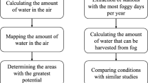 Atmospheric water, characterized by its distribution, can generally be categorized into clouds, fog, and water vapor15,16,17. The characteristics and acquisition methods of different types of atmospheric water are summarized in Fig. 1 and Table 1. Compared to clouds and water vapor, fog has larger particle sizes (2 ~ 50 μm) and is closer to the ground (0 ~ 100 m)18,19. As shown in Fig. 1, fog water collection not only reduces reliance on groundwater and surface water but also has high adaptability for foggy and remote areas that lack other types of water resources (especially in mountainous and coastal regions): fog water collection requires relatively simple conditions, with fog collectors being easy to operate and maintain, and having low construction and operational costs, making them suitable for implementation in economically underdeveloped or remote areas20,21,22,23. As a renewable resource, the continuous collection of fog water does not significantly impact the ecosystem12,24. Moreover, the water quality of collected fog water is usually relatively pure, reducing the cost of subsequent treatment22. Against the backdrop of climate change, the increase in fog provides more opportunities for fog water collection, making it a potentially valuable method of water resource acquisition.