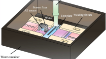 Figure 5 shows the experimental results on a curved specimen (low carbon steel SS400), demonstrating the crack detection capability of the FECA sensor system under complex geometric conditions. The scanning direction of the FECA sensor was aligned along the direction of the weld zone. The specimen was coated with a zinc (Zn) layer with a thickness of about 20–30 μm to simulate the corrosion protection layer commonly found in industrial steel structures (details of the specimen structure are presented in the Methods section). Four artificial cracks were created at a depth of about 0.5–1.0 mm from the test specimen surface, as shown in Fig. 5a. The scanning process for this specimen can be seen in Supplementary Movie 2. Since the cracks are located inside the weld zone, a low excitation frequency (5 kHz) is used to increase the EC penetration depth, as explained in Fig. 1. As a result, the signal obtained from the detection coil is quite low in intensity, requiring the real-time FECA system (Fig. 3) to operate with a signal amplifier. In the laboratory, due to equipment limitations, three operational amplifiers were used corresponding to the three channels of the FECA sensor.