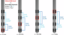 The position of the implanted DBS leads was verified using the Lead-DBS toolbox v.2.5.227 in MATLAB R2021a (MathWorks). In short, postoperative stereotactic computerized tomography was merged with preoperative T1 MRI using a two-stage linear registration (rigid followed by affine) as implemented in Advanced Normalization Tools55 for each patient individually. Coregistered scans were inspected, refined, corrected for postoperative brain shift as needed and subsequently normalized into ICBM 2009b nonlinear asymmetric MNI space56 using the SyN-registration approach as implemented in Advanced Normalization Tools. DBS electrodes were automatically pre-reconstructed in native and template space using the PaCER algorithm57, visually inspected and manually refined as needed. Anatomical localization of each pair of adjacent electrodes was determined using an adaptation of the DISTAL atlas58 in Lead-DBS, after which results were visually verified to individual patient computerized tomography–MRI coregistered electrode trajectories, and refined using two additional atlases59,60. The Lead-Group toolbox v.2.5.261 was used to visualize recording sites (Fig. 1c,d) and the distribution of baseline-subtracted delta power onto them (Fig. 2f), using an adaptation of the DISTAL atlas58.