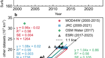 This study has several limitations. First, we applied the ‘freshwater use boundary’ framework proposed by Steffen et al.15, which has prompted debate for its limitations in fully representing the complex interactions between water and other major Earth system components19. Second, we focused solely on blue water. Other water sources, such as green water, polluted water and glacier water, are also important for both the hydrological cycle and human activities19,53,54 but were not included in the analysis. Third, we did not consider the impact of human interactions, such as water diversion projects or water storage, on the exceedance of RFBs. Fourth, the RFB exceedance was evaluated for only one year, without accounting for temporal variations or the potential impacts of future climate change.
