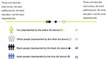 Principle-Implementation Gap. We measured this gap in a manner similar to Tuch & Hughes (1996)27. Support for the principle of equality was assessed using four items (e.g., “Ideally, white and black Americans should be relatively equal in terms of wealth and economic status”; α = 0.88). Then, support for the implementation of equality was gauged by asking participants to rate their support for four policies (e.g., “spending more money on the schools in largely black neighborhoods, especially for preschool and early education programs”; α = 0.91).