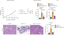 Using another cohort of hCTLA-4 mice inoculated with MC38 cells, we treated animals (n = 5 per group) with ipilimumab, anti-PD-1, anti-PD-1 plus D11, D11 alone, or vehicle in the same dosages as used previously. Some animals’ tumors were collected approximately 10 days after the last treatment dose, whereas for the remaining animals, the tumors were allowed to grow (Supplementary Fig. S7). We found that treatment with D11 plus anti-PD-1 had the best therapeutic efficacy (Fig. 5a). Single-cell suspensions from tumors were sorted to obtain CD45+ immune cells, which were then subjected to single-cell RNA sequencing (scRNAseq) and TCR sequencing. Next, the immune cell populations were compared across the samples (Fig. 5b, c). We found that all treatments increased the numbers of cytotoxic T lymphocytes (with anti-PD-1 treatment increasing them the most), whereas D11 plus anti-PD-1 treatment decreased the number of Treg cells the most (Fig. 5d). An unexpected finding was the significant increase in tumor-infiltrating macrophages associated with D11 monotherapy or D11 plus anti-PD-1 treatment. The macrophage populations were only moderately affected by ipilimumab or anti-PD-1, suggesting that D11 was the underlying cause for the increase in tumor-infiltrating macrophages. Another interesting observation from the scRNAseq analysis was that the differential expression of membrane-type 1 matrix metalloproteinase, which is known for its role as a key regulator in cell migration in tissues, was associated with D11 treatment. This finding could lead to a possible new mechanism of action, besides macrophage recruitment, to drive the search for anticancer compounds.