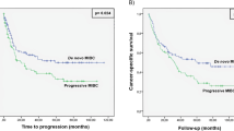 All statistical analyses were performed using EZR software (Saitama Medical Center, Jichi Medical University, Saitama, Japan), a graphical user interface for R 2.13.0. Statistical analyses related to VAF were performed using Student’s t-tests. Recurrence was defined as lymph node enlargement or metastasis to other organs detected by CT scan. For analysis of recurrence-free survival (RFS), recurrence and death from any cause were defined as the end events. For analysis of OS, death from any cause was defined as the end event. Patients with none of these events were censored at the last follow-up visit. The number of days from the date of radical therapy to the date of the earliest end event or censoring was calculated for analysis. Survival analyses were conducted using the Kaplan–Meier method and log-rank test. The Cox proportional hazards model was used to estimate hazard ratios (HRs) with 95% confidence interval (CI). All P-values are two-sided. P-values < 0.05 were considered statistically significant.