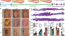 In our murine model of plasma-induced skin-inflammation, redness and swelling in and around the irradiated areas were observed immediately after CAP irradiation. The affected skin areas increased over time after plasma treatment followed by sloughing of the superficial skin layers leaving fresh wounds, reaching maximum lesion areas on the third day after irradiation. Later, the injury area of each wound declined gradually until complete healing at 2 weeks post-irradiation (Fig. 3A, B), leaving scar tissue at the injured site.