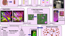40 3D patches (512 × 512 × 512) of the highest resolution data, captured at 2.6–5.6 µm per voxel, were extracted from multiple human kidneys scanned by HiP-CT, and the glomeruli were manually segmented. The widely utilised network nnU-net71 was trained using 35:5 cubes for a train:test split and a 70:30 training validation split. Training using 5-fold cross validation achieved a final DICE score of 0.928, 0.860, 0.906 for training, validation and test data, respectively. See Supplementary Note 3 for training results and nnU-net configuration. The plan files detailing all parameters for the training nnU-net are provided in Supplementary data. This trained network was used to perform inference of two VOIs of high-resolution data from the human kidney in this study, and count the number of glomeruli in each. Utilising the kidney anatomical compartment segmentation from above, the volume of cortical tissue within these high-resolution VOIs was calculated. For each VOI, the number of glomeruli and the volume of cortex in each VOI were used to estimate the total number of glomeruli in the entire kidney. Estimates of total glomerular number extrapolated to the entire kidney, from each VOI, were: 1.28 × 106 and 1.12 × 106 for VOI 3.1 and VOI 2.1, respectively.
