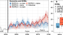 We used daily precipitation, maximum and minimum temperatures from five general circulation models (GCMs; BCC-CSM2-MR, INM-CM5-0, MIROC6, NorESM2-MM, and TaiESM1) that were part of the Coupled Model Intercomparison Project (CMIP)-6 to examine the changes in the inflow and dam storage under the projected future climate. The selected GCMs effectively reproduce the observed seasonal variations in temperature and precipitation across the Indian monsoon region5,70. We used three scenarios: historical climate (1951–2014), and two shared socioeconomic pathways consisting of a low-emission scenario (SSP1-2.6; 2015–2100) and a high-emission scenario (SSP5-8.5) considering radiative forcing of 2.6 and 8.5 W/m2, respectively by the end of 21st century. We selected these two scenarios as SSP1-2.6 represents a sustainable future, whereas SSP5-8.5 represents the most aggressive scenario because of fossil-fueled development. SSP5-8.5 also reflects a trajectory with high energy demand and continued dependence on fossil fuels71, which remains a significant component of India’s current energy sources72. We bias-corrected the CMIP6 projections for the five GCMs using the trend-preserving bias correction approach73, ensuring the removal of bias while preserving the long-term climate signal. The bias-correction was performed against the observed precipitation and temperature datasets.