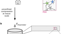 As part of their normal physiology, cells and tissues undergo changes in shape in response to internally generated and external mechanical forces. For example, adult connective tissues are subjected to mechanical forces as part of everyday movement (such as tendons, skin, muscle etc.), and embryonic epithelial layers are stretched by internally generated forces during formation of the internal organs. In addition to passively sustaining mechanical loads, cells actively sense and respond to mechanical stimuli in their environment through a process referred to as mechano-transduction1,2,3. Cellular responses to load depend greatly on cell type and loading conditions, which can impact cell proliferation4,5,6, viability7,8,9, and gene expression10,11,12,13. In addition, mechanical loading of cells and tissues plays an important role in tissue homeostasis. In many connective tissues the absence of mechanical load can lead to tissue degeneration (i.e., muscle atrophy, loss in bone density)14,15,16. Given that sustaining and generating mechanical load is critical for tissue function and homeostasis, many tissues are specialized for this purpose and are composed of extracellular matrix proteins (e.g., collagen, elastin) that are organized into load-bearing structures. In contrast, approximately 80% of the volume of human brain tissue are cells, with a ratio of 5:3:1 for neurons, glia and endothelial cells17.