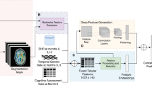 Figure 4 depicts the approach to feature extraction and modeling. For each subject’s imaging visit, when both 3D T1-weighted and T2/FLAIR MRI scans were available, the T2/FLAIR sequence was co-registered to the T1 sequence to ensure anatomical alignment. T1 images were skull-stripped, bias-corrected, and segmented using the FastSurfer tool (v2.2.0)49 for cortical, subcortical, cerebellar, and ventricular segmentation of 120 ROIs, which are documented in Supplementary Table 8. T2/FLAIR images were processed using the Lesion Prediction Algorithm from the Lesion Segmentation Toolbox (LST) version 3.0.0 in MATLAB50,51. Lesion probability masks were thresholded at p = 0.5, consistent with a range of well-validated thresholds identified by prior literature52,53, to generate binary lesion masks. Regional WMH burden was estimated by applying the binarized lesion probability map (\({\text{L}}\left(x,y,z\right)\)) to the T1 segmentation mask (\({\text{S}}\left(x,y,z\right)\)), accounting for voxel volume (\({{\text{V}}}_{\text{voxel}}\)), where
