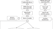 The early-matured japonica/Geng cultivar SJ18, which was developed by our own group, was licensed for release in 2014 and is now widely planted (more than 0.8 million hectare) in Heilongjiang province in Northeast China. High-molecular-weight genomic DNA was extracted from 10-day-old leaves of SJ18 (multiple seeds) using the modified CTAB method11, followed by 0.5× bead purification twice. The quality of the DNA sample was assessed using 0.75% agarose gel assays and Nanodrop (Nanodrop Technologies, Wilmington, DE, US), and was quantified using Qubit system (Thermo Fisher Scientific, Waltham, MA). The sample that met the quantity and quality standards was split into two parts, which were used to construct PacBio Sequel and Illumina libraries for LRS and SRS, respectively (Fig. 1).