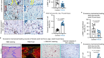 After fixation in 10% neutral buffered formalin (Thermo Fisher Scientific) for 24 h, skin samples were dehydrated, paraffin-embedded, and sectioned at 5-μm increments for either hematoxylin and eosin (H&E) or Masson’s trichrome staining, and 10-μm increments for Picrosirius red (PSR) staining. To ensure a more precise quantification, wounds were bisected centrally, and the total scar area was normalized to varying dermal thickness using the Scar Index, as previously described.19,26 Among these staining methods, PSR coupled polarized light microscopy (PLM) distinguishes clear boundaries between scar tissue and unwounded normal dermis (Supplementary Figure 2). Immunohistochemical staining was performed and analyzed, as previously described.19,20 The primary antibodies used are listed in Supplementary Table 1.