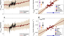 A conspicuous feature in the post-1980 MSLP correlations (Fig. 3d) is the emergence of a Southern Oscillation (SO)-like pattern in the tropical Pacific, reflecting a stronger relationship of the zonal mean Hadley cell with the El Niño Southern Oscillation, as observed for the boreal winter season cell12. This SO-like pattern means that, statistically, during La Niña (El Niño) conditions, the zonal mean Hadley cell edge is anomalously poleward (equatorward) when enhanced (reduced) convection over the western (eastern) Pacific occurs. This relative widening of the Hadley cell during La Niña compared to El Niño is a feature seen in other reanalysis products12. Prior to the 1980–2010 period, the existence of a SO-like pattern is not observed, which suggests that the association of the Hadley cell with the El Niño-Southern Oscillation before and after the mid-1970s climate shift is quite different14; that is, there is a strong influence from multidecadal variability.