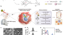 To test our hypothesis, we used 1 for in vitro study. As shown in Fig. 3a, after 17 h incubation of 1 at 100 μM and 30°C with 1 nmol/U of furin, we directly injected the incubation mixture into a HPLC system and collected the peaks for matrix-assisted laser desorption/ionization (MALDI) mass spectroscopic analysis. Interestingly, peaks on HPLC traces at retention times of 38.2 min (1-D-1, 19.8%), 39.5 min (1-D-2, 21.2%), 40.5 min (1-D-2, 20.0%) and 42.8 min (1-D-4, 13.5%) share an identical molecular weight and were identified as the condensation products of 1 (i.e., 1-D, Supplementary Fig. S1). Owing to the presence of L-lysine, these four peaks probably represent the four diastereoisomers of 1-D that arise from two different ring-closing orientations during the condensation between L-cysteine motif and cyano group of 125. These four dimers account for 74.5% of the enzymatic products of 1 in total. UV-Vis spectrum at 500–700 nm of the above reaction mixture showed an obvious increase of absorption compared with that of the solution without furin, suggesting the formation of nanostrcutures (Supplementary Fig. S2). Directly taking the above dispersion for scanning electron microscope (SEM) and transmission electron microscope (TEM) observation, we uncovered the 3-dimensional and 2-dimensional depositions of the Gd-NPs of 1 (Fig. 3b&c). The Gd-NPs have uniform spherical shapes and an average diameter of 57.1 ± 11.9 nm.