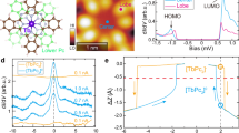 Experiments were carried out in an ultrahigh vacuum (base pressure of 1 × 10−10 mbar) LT-STM system (Unisoku), equipped with standard surface processing facilities. An atomically flat Au(111) surface was prepared by repeated cycles of sputtering with argon ions and annealing at 800 K. Commercial MnPc molecules (Sigma-Aldrich, 97% purity) were sublimated from a Knudsen-type evaporator after thermal purification, while the Au(111) substrate was held at room temperature. One monolayer refers to a close-packed MnPc layer covering the whole Au(111) surface, as examined by STM (Supplementary Fig. 6). STM images were acquired in the constant-current mode with bias voltage applied to the sample. Spectroscopic measurements were performed by using a lock-in technique with a 0.5 mVrms sinusoidal modulation at a frequency of 973 Hz. Most images and spectra were obtained with electrochemically etched tungsten tips at 4.2 K, but the magnetic field dependent measurement was performed at 0.4 K. Measurements of local spectroscopy were electronically calibrated by performing dI/dV measurements on clean Au(111) before and after measurements on molecules, based on the well-known Au(111) surface state36. The atomic H is generated by cracking H2 molecules with hot tungsten filament, which is placed very close (~5 cm) to the sample.