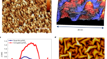 The morphology of the engineered graphene paper was investigated by scanning electron microscopy (SEM). Figure 1d shows the typical SEM images of graphene paper before and after laser treatment with 50% laser intensity. The pristine graphene paper shows a relatively smooth surface. In contrast, the engineered graphene paper possesses a very rough surface with ordered concaves and convexes. The periodic concaves have a uniform distance of ~30 μm, consistent with the spot size of the laser beam. Such a rough surface may be responsible for enhanced light absorbance and diffuse reflection, leading to the dark colour of the engineered graphene paper. The contact angle (CA) of graphene paper was measured (inset of Figure 1d) and used as the quantitative indicator of changing surface hydrophobicity. The CA of the untreated graphene paper is 30°, which increases dramatically to 131° for the engineered paper, indicative of enhanced surface hydrophobicity. Due to the high surface tension, a water droplet tends to minimize the surface. Although the surface of a hydrophobic substrate is covered with an aqueous solution, the area between ridges on the rough surface may not be filled by the liquid, leading to the formation of a composite interface. As a result, air bubbles are entrapped into micro-/nano-sized pores at the solid surface, where a mix of solid–liquid and solid–gas interfaces is created. Compared to the plain graphene paper, engineered graphene paper with enhanced surface roughness increases the volume of air bubbles entrapped in the interface and the extent of solid–gas interface is proportional to the degree of hydrophobicity of the material26,27,28. Meanwhile, after the laser treatment, the electrical resistance of the paper is reduced from 1.5 to 0.3 kΩ/cm. The enhanced electrical conductivity is attributed to the elimination of oxygen atoms caused by the laser irradiation process (the oxygen atomic content reduced from 19.5% to 14.1% after laser treatment according to the X-ray photoelectron spectroscopy in Figure S2), a phenomenon consistent with previous literatures2,3. The changes in surface chemistry and the introduction of surface roughness at the micro-/nano-scale (see also details in Figure 2) by the laser irradiation may both contribute to the enhanced hydrophobicity of engineered graphene papers.