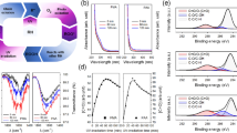 To demonstrate the formation of the carbonyl groups, the FTIR spectra of the nanospheres before and after UV irradiation under air was analyzed, as shown in Figure 2. Before the irradiation, one can observe three main peaks appearing at 1600 cm−1, 2800–3000 cm−1 and 3000–3100 cm−1, corresponding to the C = C stretching of aromatic ring, C-H stretching of aliphatic ring and C-H stretching of aromatic ring, respectively14. During irradiation in air, it is clearly shown that a broad peak at 1720 cm−1 is created in addition to the three main peaks. This indicates that the carbonyl groups were formed on the nanospheres by UV irradiation in air. We also observe that the intensity of the peaks for C-H bonds of aliphatic ring and aromatic ring are reduced after irradiation while the intensity of the peak for C = C bonds remains constant. The new small peaks at 3200–3500 cm−1 resulting from the hydroperoxides were also observed. This verifies that UV irradiation in air leads to the decomposition of C-H bonds with the subsequent formation of the carbonyl groups. Therefore, the white emission (around 510 nm) can be clearly attributed to the formation of the carbonyl groups on the surface of the nanospheres.