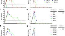 The initial treatments evaluated against EBOV were more supportive in nature with a focus on remediating the coagulation abnormalities induced by the virus9,10,11,12,13. A study using the VSVΔG/ZEBOVGP vaccine as a post-exposure intervention showed that this strategy was more efficacious than previous interventions, protecting 50% of the infected animals if administered within 30 minutes after exposure6. More recently, antisense therapy has been applied to EBOV infection with success. Modified phosphorodiamidate morpholino oligomers (PMOplus) were found to protect 62.5% of the infected animals when administered daily for 10–14 days8. Small interfering RNAs (siRNAs) were shown to be fully protective in NHPs when administered daily for seven days7. In both cases, treatment began within 30–60 minutes of exposure.