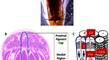 Ventral skin patches (~0.25 cm2) were excised from the centre of the maximum ventral photophore density area of specimens from 37 distinct species (Supplementary Data 1) and photographed under a binocular microscope (Leica MZ6, Wetzlar, Germany). Pictures were analysed in Image J v. 1.46 with random 2 × 2 mm counting frames (except for T. kabeyai where a 1 × 2 mm counting frame was used instead) to estimate photophore mean diameter, photophore density and PAP (Supplementary Fig. S1); photophore variables were independently measured twice and results were averaged to provide final values.