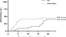 The normalized VEGF protein concentrations in the retinas at 30, 90 and 180 days postoperatively are shown in Table 1 and Fig. 5e. No significant differences were noted at 30, 90 and 180 days postoperatively in the silicone oil group (p = 0.745, p = 0.437 and p = 0.891, respectively) or the FCVB + silicone oil group (p = 0.564, p = 0.335 and p = 0.744, respectively) as compared to the contralateral eyes.