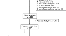 Sumida, Y., Yoneda, M. & Hyogo, H. Validation of the FIB4 index in a Japanese nonalcoholic fatty liver disease population. BMC Gastroenterol. 12, 2 (2012).