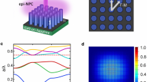 Figure 1c shows a time-integrated emission spectrum from the InGaN VCSEL, obtained with an optical pump power of 300 μW at room temperature. Here, single-mode lasing at 425.7 nm is apparent. The single-mode lasing persisted even at elevated pumping power. The plot of the input vs. output powers shown in Fig. 1d demonstrates that the pulse-lasing threshold was 150 μW. The average output power with an pump power of 300 μW was measured to be in an order of nW. Figure 1e shows an enlarged emission spectrum from the InGaN VCSEL operated with an optical pump power below the threshold. This plot shows that the free spectral range (FSR, i.e., the spacing between two adjacent cavity modes) is around 10.8 nm, from which we estimate the cavity length L to be 2.6 μm. The spectral width of the optical mode centered at 425.7 nm is 1.0 nm; we estimate that its cavity quality factor is 425.7 and that the photon lifetime within the cavity is approximately 0.1 ps (see Supplementary Information).