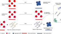 AuNPs were synthesized using the classical citrate reduction method34. Briefly, colloidal AuNPs with an average diameter of 13 nm were prepared by rapidly injecting a sodium citrate solution (10 mL, 38.8 mM) into a boiling aqueous solution of HAuCl4 (100 mL, 1 mM) with vigorous stirring. An obvious color change of the reaction mixture was observed from transparent to dark blue and finally wine red. After being boiled for 20 min, the reaction flask was removed from the heat to allow the reaction solution to cool at room temperature.