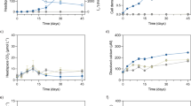 The results from Experiment 1 are shown in Fig. 1 (see the Methods section for details on the different experiments performed). The trends in the pH variation for the two treatments (i.e. with and without CaCl2) are similar (Fig. 1a). There was a sharp initial decrease in pH from day 0 (the primary culture) to day 2. In the days which followed, the pH rose slightly. A significant difference was that a moderate reduction in pH occurred with wollastonite as the only calcium source (compared with that containing CaCl2) from day 4 to day 6.