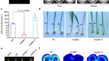 For plant infection assays, conidia from 5-day-old CMC cultures were harvested and resuspended to 105/ml in sterile distilled water. Flowering wheat heads of cultivar Xiaoyan 22 were drop-inoculated with 10 μl of conidium suspensions at the fifth spikelet from the base of the spike. Symptomatic spikelets were examined and counted 14 dpi. The inoculated wheat kernels with FHB disease symptoms were harvested and assayed for DON production as described59. Corn silk and corn stalk infection assays were conducted as described60.