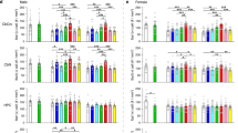 Male prepuberty offspring rats [control-saline (n = 8), MSD-saline (n = 8), control-minocycline (n = 8) and MSD-minocycline (n = 8)] were sacrificed by decapitation and their hippocampus was quickly removed using aseptic technique, placed in sterile tubes placed on dry ice. Total RNA was extracted using Trizol reagent (Invitrogen Life Technologies, USA) according to the experiment's protocol. The RNA samples were suspended in 30 μl nuclease-free water. Then 5 μg of total RNA were reverse transcribed using the First Strand cDNA Synthesis Kit (Invitrogen Life Technologies, USA). The cDNA was stored at −20°C. All PCR reactions were operated under the following conditions: initial 98°C for 2 min followed by 38 cycles at 98°C for 2 s and 60°C for 10 s (Bio-Rad CFX 96). Each sample was tested in triplicate. Threshold amplification cycle number (CT) was determined for each reaction within the linear phase of the amplification plot and relative gene expression was determined using the 2 −ΔΔCt method55. The values were normalized against the housekeeping genes GAPDH. Primer sequences were as follows: TNF-α, 5′-CATCTTCTCAAAATTCGAGTGACAA-3′, 5′-GGGAGTAGACAAGGTACAACCC-3′; IL-1β, 5′-CCCTGCAGCTGGAGAGTGTGG-3′, 5′-TGTGCTCTGCTTGAGAGGTGCT-3′; IL-6, 5′-TCTTGGGAC-TGATGCTGGTG-3′, 5′-CAGAATTGCCATTGCACAACTC-3′; CD68, 5′-CCACAGGCAGCACAGTGGACA-3′, 5′-TCCACAGCAGAAGCTTTGGCCC-3′; iNOS, 5′-GCCAAGTTTGAGGTCAACAACCCA-3′, 5′-CCCACCCCGAATCAGCAGCG-3′; CD206, 5′-AGTTGGGTTCTCCTGTAGCCCAA-3′, 5′-ACTACTACCTGAGCCCACACCTGCT-3′; IL-4, 5′-GGTCTCAGCCCCCACCTTGC-3′, 5′-CCGTGGTGTTCCTTGTTGCCGT-3′; IL-10, 5′-AATTCCCTGGGTGAGAAGCTG-3′, 5′-TCATGGCCTTGTAGACACCTTG-3′; Arg1, 5′-TCACCTGAGCTTTGATGTCG-3′, 5′-TTCCCAAGAGTTGGGTTCAC-3′; Ym1, 5′-ACCCCTGCCTGTGTACTCACCT-3′, 5′-CACTGAACGGGGCAGGTCCAAA-3′; Iba1, 5′-CTGGGAGATGTGAATGGAG-3′, 5′-ACTGATGCTGGCTACTGATG-3′; GAPDH, 5′-ATGACCCCTTCATTGACCTCA-3′, 5′-GAGATGATGACCCTTTTGGCT-3′.