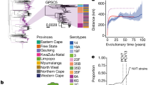 The difficulty of interpreting PM data from France, because of the gradual vaccine introduction and the concomitant campaign to lower antibiotic use, has been reported before11. Indeed, our findings indicate a complex association between the two interventions: the PCV7 effect gradually combined with the impact of antibiotic-use reduction to amplify NVS-pneumococcus replacement to finally cause the PM increase. That interpretation was only possible here because of our method, i.e., a mathematical model that integrated comprehensive data on vaccine and antibiotic use and that was confronted to detailed PM-incidence data using statistical inference. Previous studies highlighted a variety of mechanisms responsible for serotype replacement after vaccination, e.g., competition between vaccine and nonvaccine serotypes27,28,29, capsular switch30, invasiveness of nonvaccine serotypes11, or high pneumococcal antigenic diversity4,31. However, most of those studies focused on differences between vaccine and nonvaccine serotypes as the main forces driving serotype replacement postvaccination. Our findings also suggest the key roles of antibiotic use and competition between susceptible and resistant strains in modulating the effects of conjugate vaccines. While the heterogeneity of pneumococcal epidemiology worldwide precludes unequivocal recommendations, our findings have two potentially notable public health implications. First, under certain conditions (low vaccine-serotype coverage and high resistance frequency), initiating concomitantly vaccination and antibiotic-use reduction programs can lead to unexpected trends. Second, circulating serotypes and susceptibility to antibiotics, in addition to crude incidence estimates, should be carefully monitored after the rollout of vaccination.