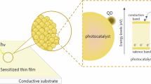A semi-transparent SiO2 nanoparticle thin film was fabricated by doctor-blading a paste containing 200 mg SiO2 powder (10–20 nm, Sigma-Aldrich), 100 mg ethyl cellulose (Tokyo Kasei Kogyo) and 1 mL ethanol onto a quartz glass slide (1 × 4 cm2) and then annealed for 1 h at 800 °C. The thin film was immersed in a 3-mercaptopropionic acid aqueous solution (0.1 M) to modify the surface of SiO2 nanoparticles to contain a carboxylate group for use as an anchoring group. After drying, the film was immersed in a CdS QDs CH2Cl2 solution for 1 day and dried. Then, the CdS QDs/SiO2 thin film was obtained.