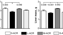 All procedures with mice were conducted according to the Animal Research Institute Committee guidelines of Nanjing Agriculture University, China. The experimental protocols were approved by Nanjing Agriculture University Animal Research Institute Committee. Mice were housed in a temperature controlled room with appropriate dark-light cycles, fed a regular diet and maintained under the care of the Laboratory Animal Unit, Nanjing Agricultural University, China. Mice were randomly assigned to 3 groups (mice number = 40/group) and acrylamide was dissolved in water. The acceptable daily intake (ADI) of acrylamide for these groups was 0 mg/kg/d (control mice), 10 mg/kg/d and 50 mg/kg/d according to the previous work47,48,49. Female 3-week-old ICR mice were kept at a constant temperature of 24 ± 2 °C on a 12 h light/dark cycle and had unrestricted access to food and water throughout the study period that lasted 6 weeks.