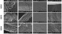 Recently, more research has focused on the tribological behaviours of materials at the microscale and nanoscale12,13,14 to characterize early damage to hard tissues and the alteration of microstructure caused by external factors. In the current study, the nanoscratch technique was applied to determine the microtribological characterization of enamel before and after irradiation. The results showed that normal enamel without exposure to irradiation in perpendicular-sectioned samples had a low friction coefficient, decreased debris formation and brittle delamination. However, when the scratch ran parallel to the enamel rods, more material removal and a higher friction coefficient were observed. All of these results are consistent with those of previous studies9,14. Interestingly, enamel in the perpendicular-sectioned and parallel-sectioned slabs after gamma irradiation showed a higher friction coefficient compared to enamel before irradiation. It is known that the wear resistance of enamel decreases with an increase in the friction coefficient9,15; therefore, the higher friction coefficient and deeper scratch remnant depth of enamel observed after irradiation (Fig. 2) indicated inferior anti-wear properties of the enamel. These observations might help explain the frequently observed partial to total enamel delamination after irradiation that is seen clinically2.