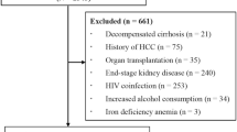 Using hepcidin to predict the initiation of liver injury might be difficult to set up a universal criterion due to both intrinsic and extrinsic heterogeneity of hepcidin expression. One study reported that hepcidin levels are much higher in 40–60 years old females30. Since most of the female participants in our cohort studies are above 40 years old, our conclusion cannot be generalized to those females below 40 years old due to the potential physiological differences in their hepcidin concentration and iron status. One limitation of our study is the potential confounders not considered in this study, such as dietary factors associated with transaminase levels. Another limitation is that the mechanisms of hepcidin regulation in liver injury need further investigation in other animal models and hepcidin dysregulated population. A hepcidin knockout mouse model in future study will provide in vivo evidence to study the causal relationship between hepcidin and liver injury. Additional population-based studies are warranted to validate these findings in other cohorts and test their potential relevance for the clinical management of hepcidin dysregulation induced liver patients.