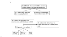 All patients were followed regularly every 2–3 months after surgery until study closure in July 2013 with serum AFP/CA19-9 and abdominal ultrasonography. Progressive elevation of serum AFP/CA19-9 levels and/or ultrasonographic detection of a new hepatic lesion prompted hospitalization for confirmation of diagnosis and appropriate management, including repeat resection, radiofrequency ablation (RFA), transcatheter arterial chemoembolization (TACE) or supportive therapy. Recurrence was confirmed by contrast-enhanced imaging studies or cholangiography according to standard guidelines for HCC27or ICC28. Overall survival (OS) was defined as the interval between surgery and death or the last observation taken. The data were censored at the last follow-up period for living patients. Disease free survival (DFS) was defined as the interval between the date of surgery and the date of diagnosis of any type of relapse. If recurrence was not diagnosed, patients were censored on the date of death or the last follow-up.