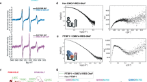 During IBDV capsid assembly, the VP3 C-terminal end establishes electrostatic interactions with a pVP2 C-terminal amphipathic α-helix, which is removed proteolytically in most mature virions16. Since the genomic dsRNA binds VP3 to build RNP complexes inside virions11, the strengthening effect described above might be mediated by the whole complex or by dsRNA or VP3 alone. We compared the mechanical response of IBDV virions with VLP produced by IBDV polyprotein expression in an inducible recombinant vaccinia virus24,31. In this heterologous system, the IBDV polyprotein is processed correctly and most VLP are assembled with the same shape and size as authentic IBDV particles, as capsids with a T = 13 lattice. We purified VLP by consecutive ultracentrifugations in sucrose and CsCl gradients and obtained two bands with different buoyant densities based on content (Supplementary Fig. 2). The upper band contained empty VLP and the lower band, VLP bearing heterogeneous cellular messengers (ssRNA) that were encapsidated non-specifically. In nanoindentation experiments, these VLP showed rigidities of 0.28 ± 0.09 N/m and 0.32 ± 0.13 N/m for empty and RNA-containing VLP, respectively (Fig. 1g,h). The rigidity values for these VLP were similar to that of the (empty) E1 population (0.35 ± 0.12 N/m) and much lower than those of the other dsRNA-containing IBDV particles (Fig. 2a).