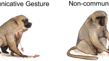 Communicative persistence was defined as repetition or elaboration of a single gesture or gesture sequence when it did not elicit the desired response37,38. Elaboration could include the addition of a different referential or iconic gesture, or the addition of other intentional gestures including ventral present, head shake, touch and body rock (see Supplementary Table 1 and Supplementary Figure 1). When signallers showed persistence, we scored recipients’ responses until the goal was achieved or until the recipient clearly indicated a negative response.