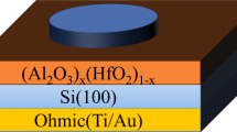 The AlGaN/GaN structure was grown by metal-organic chemical vapor phase deposition (MOCVD) on a 2-inch sapphire substrate. The epitaxial layers consist of a 25 nm undoped Al0.25Ga0.75N barrier layer formed on a 2.7 μm undoped GaN layer, which was grown on a 300 nm Fe-doped GaN buffer layer. The electron Hall mobility μn and the 2-DEG density ns were measured to be 1600 cm2/V·s and 8 × 1012 cm−2, respectively. The fabrication process includs mesa isolattion by Cl2 (10 sccm)/BCl3 (20 sccm) reactive ion etching (RIE), gate dielectric deposition (15 nm Al2O3) by atomic layer deposition (ALD), gate metal (100 nm TaN) by magnetron sputtering system, gate electrode definition using standard photolithography, the source/drain contacts [Ti (20 nm)/Al (120 nm)/Ti (10 nm)/Pt (100 nm)] deposition by E-beam, alloying process (650 °C, 30 s) in N2 ambient. P(VDF-TrFE) with a 75/25 molar ratio was spin-coated on the devices and baked at 135 °C for 20 hours. An 80 nm-thick gold (Au) film was then deposited by sputtering and patterned as an electrode for the P(VDF-TrFE). Gold is a chemically inert metal and can avoid the reaction with the P(VDF-TrFE) film to form an non-ferroelectric layer near the interface between gold and the P(VDF-TrFE)40. The device in this work has a gate length LG of 2 μm, a gate-to-source distance LGS of 5 μm and a gate-to-drain distance LGD of 15 μm. The ferroelectric hysteretic measurement on the test structure and devices were performed by using Radiant Technology Precision LC.