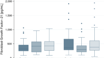 Serum was collected from subjects after overnight fasting and kept at ≤−20 °C until assay. The serum IL-6 concentration was measured with a chemiluminescent enzyme immunoassay (CLEIA) system (Fujirebio Inc., Tokyo, Japan). Serum levels of APN, sαKl, FGF-19 and FGF-21 were measured with a sandwich enzyme-linked immunoassay (ELISA) system according to the manufacturer’s instructions (Otsuka Pharmaceutical Co., Tokushima, Japan, Immuno-Biological Laboratories, Takasaki, Japan, R&D Systems Inc., Minneapolis, USA). To measure the serum concentrations of growth factors, detection kit was obtained commercially (WideScreen Human Cancer Panel 2, Merck, Tokyo, Japan). The growth factors included in this kit were as follows: AREG, betacellulin, epidermal growth factor, EGFR, epiregulin, FGF-basic, heparin-binding epidermal growth factor, platelet-derived growth factor-BB, PLGF, tenascin C, TGF-α and VEGF-A. The data were followed by analysis with a multiplex analysis device (Bio-Rad Laboratories, Tokyo, Japan).